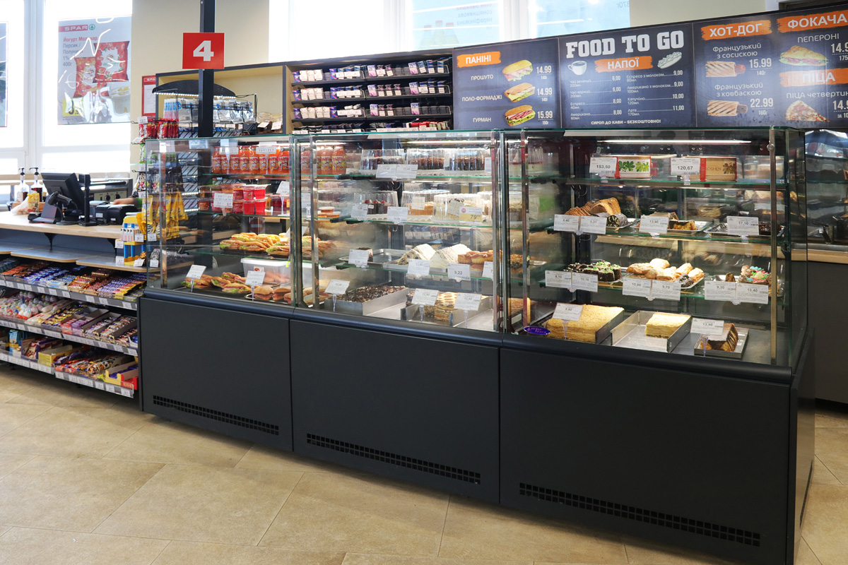 The store is equipped with refrigerated display cabinets “Missouri M”, refrigerated wall display cabinets “Louisiana eco”, specialized display cabinets for fruits and vegetables “Louisiana VF”, confectionery refrigerated display cabinets “Dakota cube 85/150”.