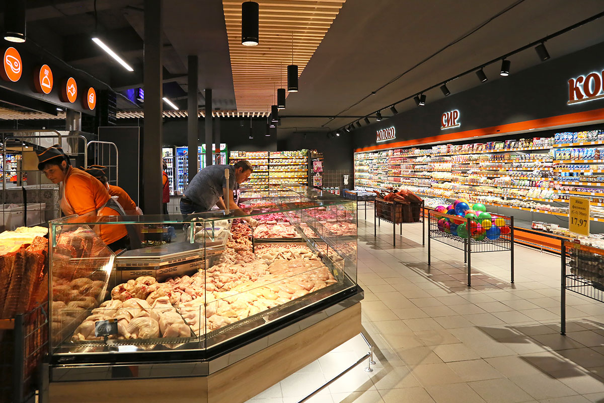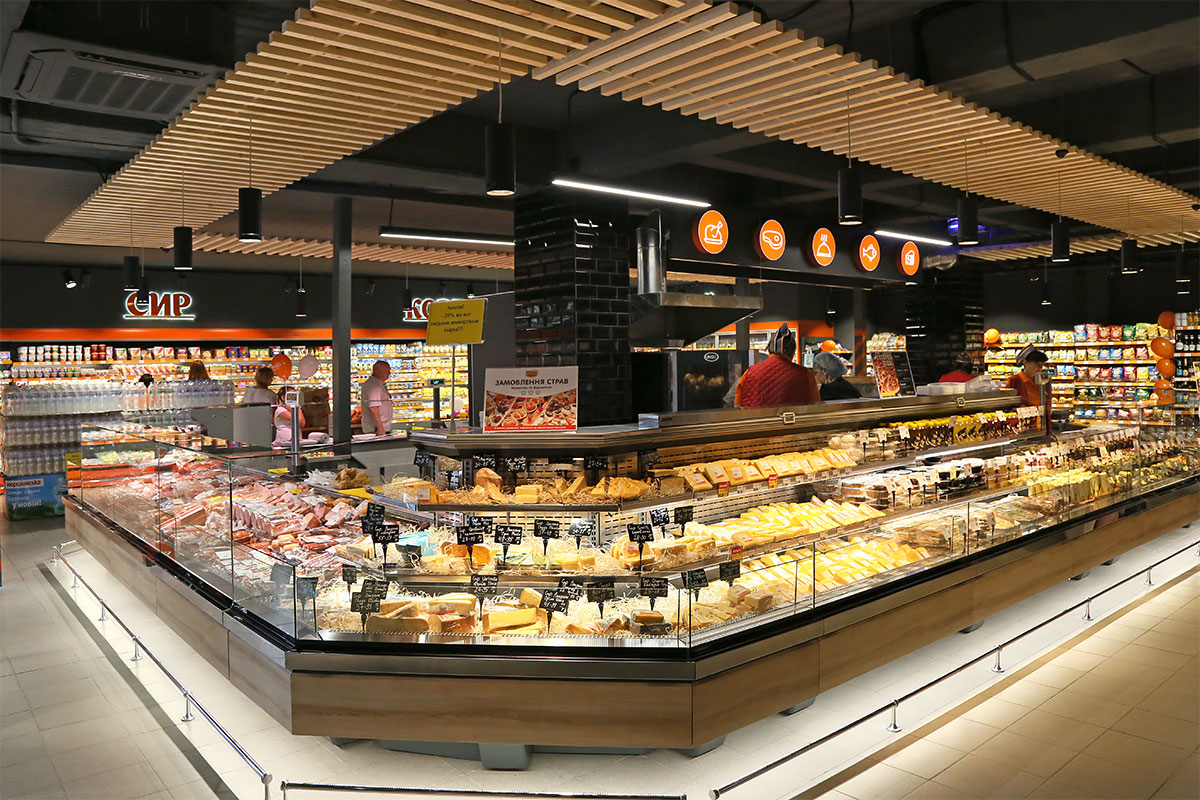 An island of deli merchandisers “Missouri enigma” installed in the store has become a real decoration of the shopping floor. These refrigerated display cabinets provide customers with excellent product visibility, which guaranteed with barely noticeable transparencies and restrained but effective exterior lighting. To prevent fogging at high ambient humidity, the display cabinets are equipped with front glass blowers.