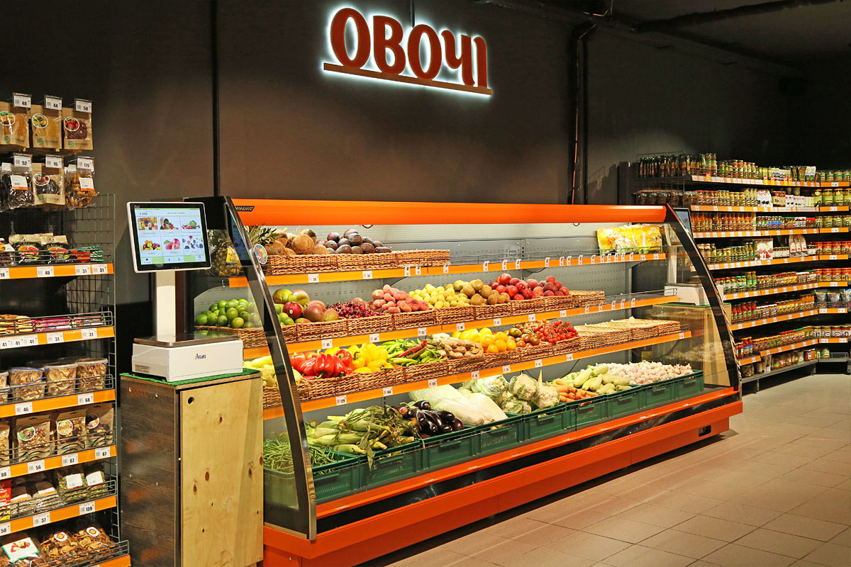 For the sale and presentation of fresh fruits and vegetables, the “Chudo Market” retail chain has installed the “Louisiana eco” speciality wall-sited display cabinets.