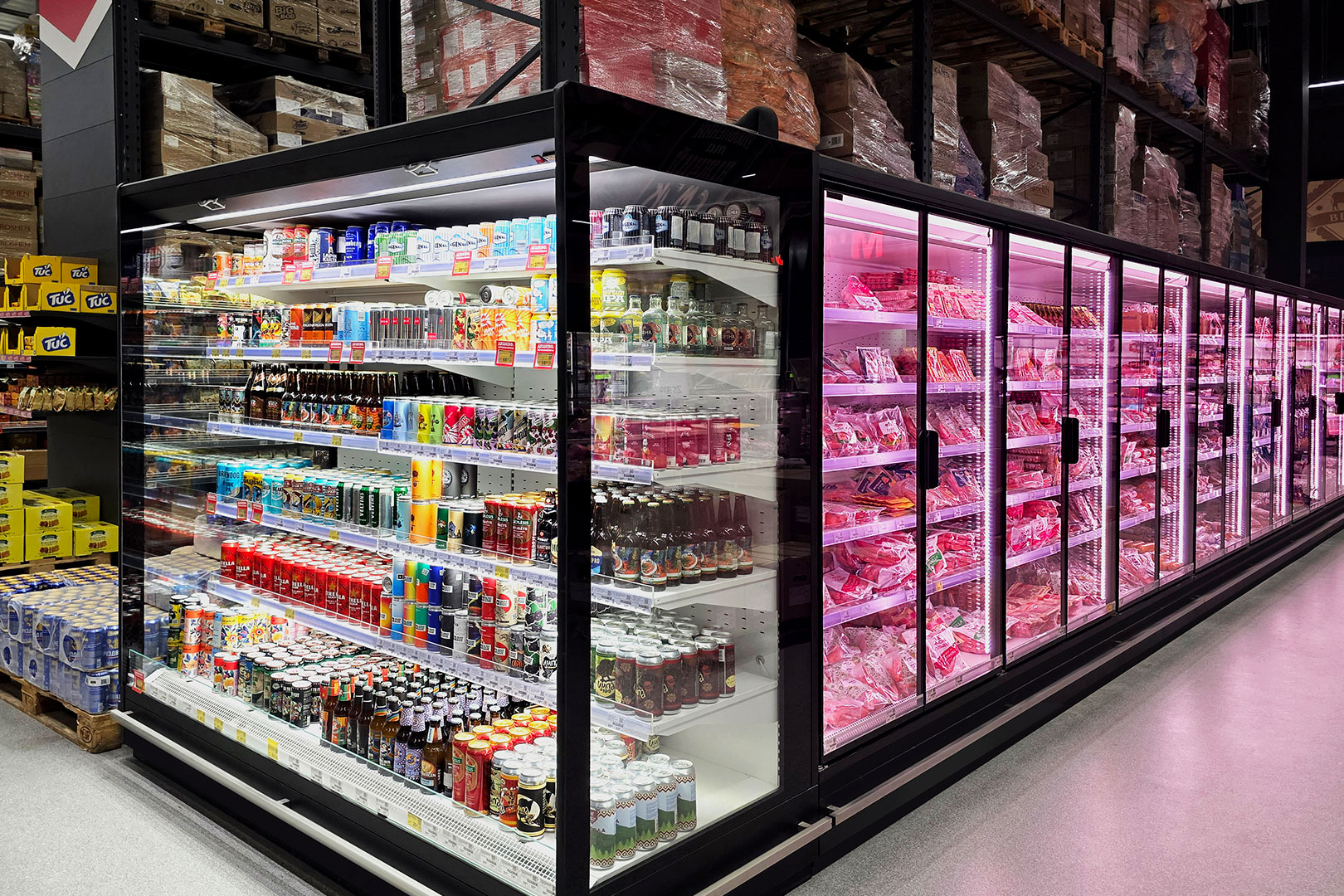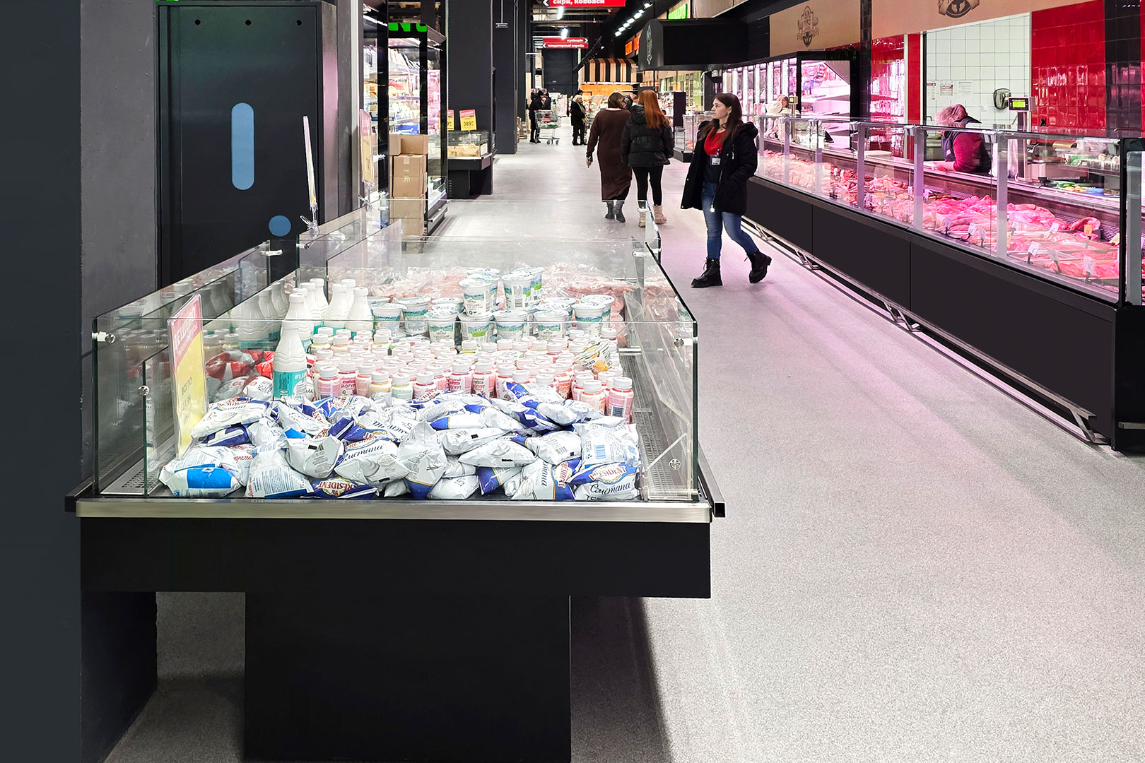 As part of the project, the retail space was equipped with “HITLINE” refrigeration equipment, taking into account the key requirements of this store format. The size of the hypermarket necessitated reliable solutions that would ensure a wide product range, stable temperature control, and a clearly structured sales areas. The ergonomic design of the refrigeration equipment ensured a good display of products, retaining the concept of a large-scale wholesale format.