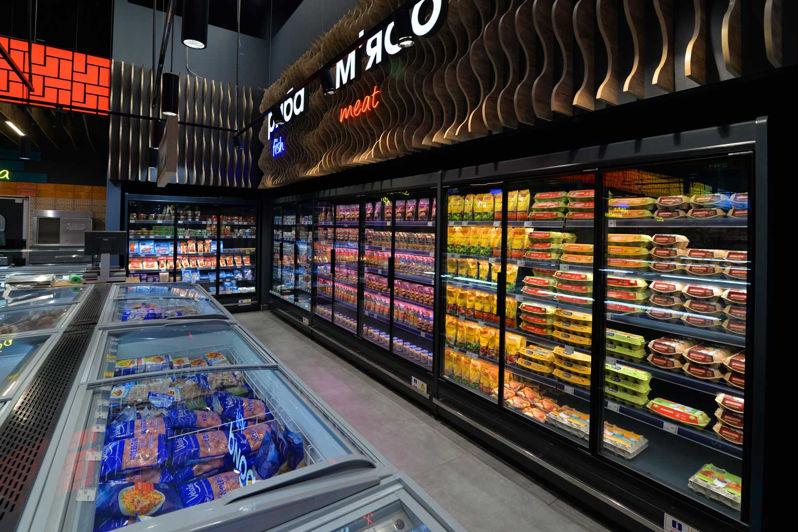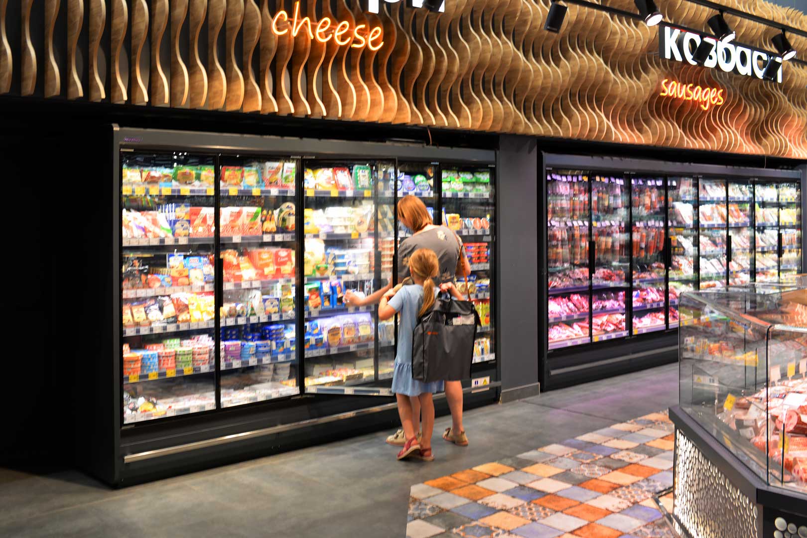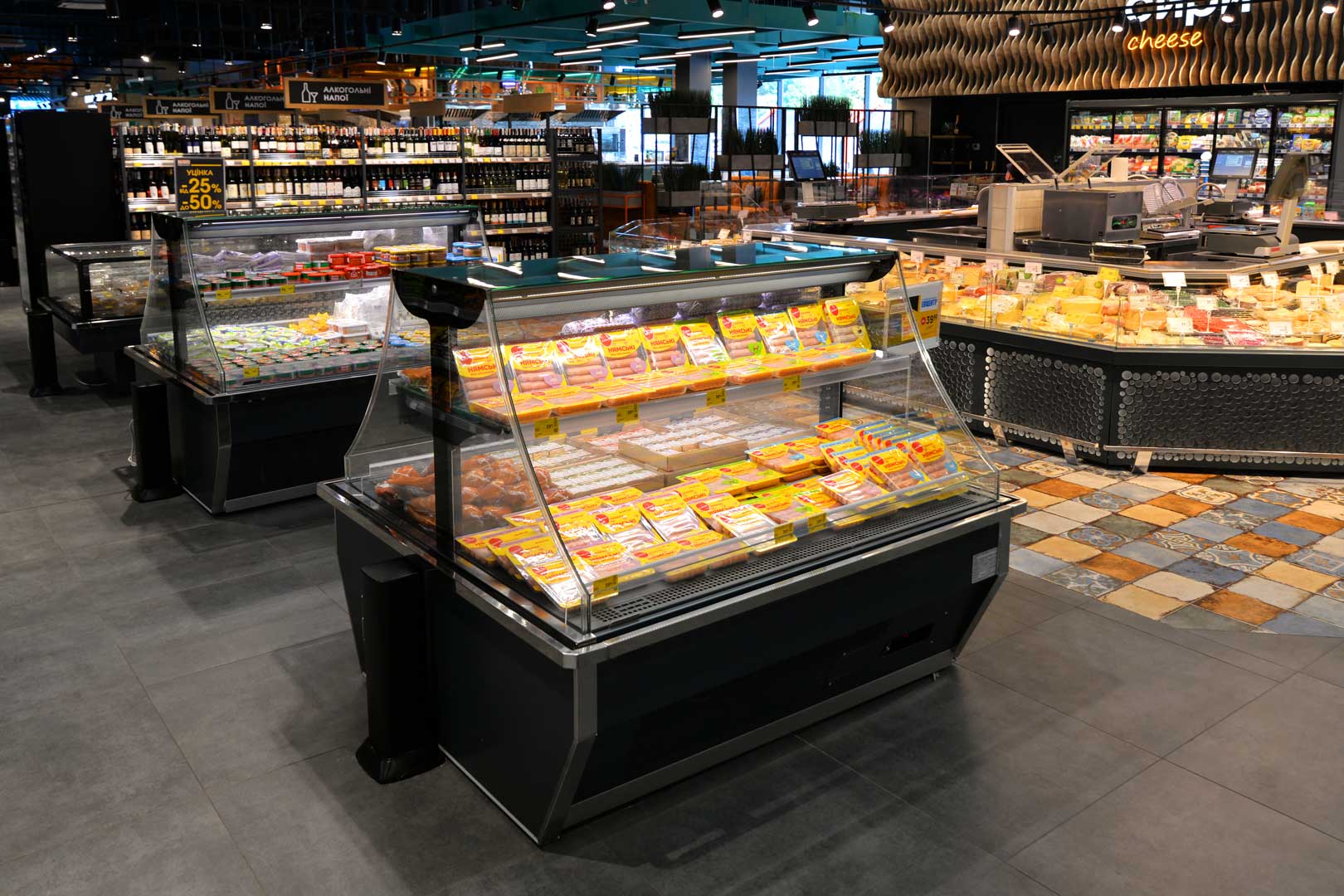 Refrigerated counters Мissouri MС 120 deli OS 120-DBM-300, promotional merchandiser Virginia AC 120 deli self 096-DLA-125