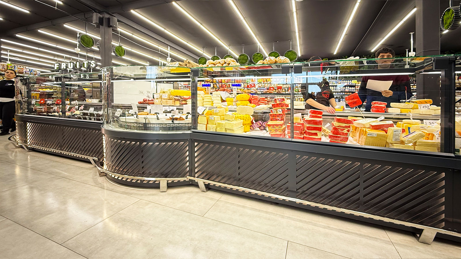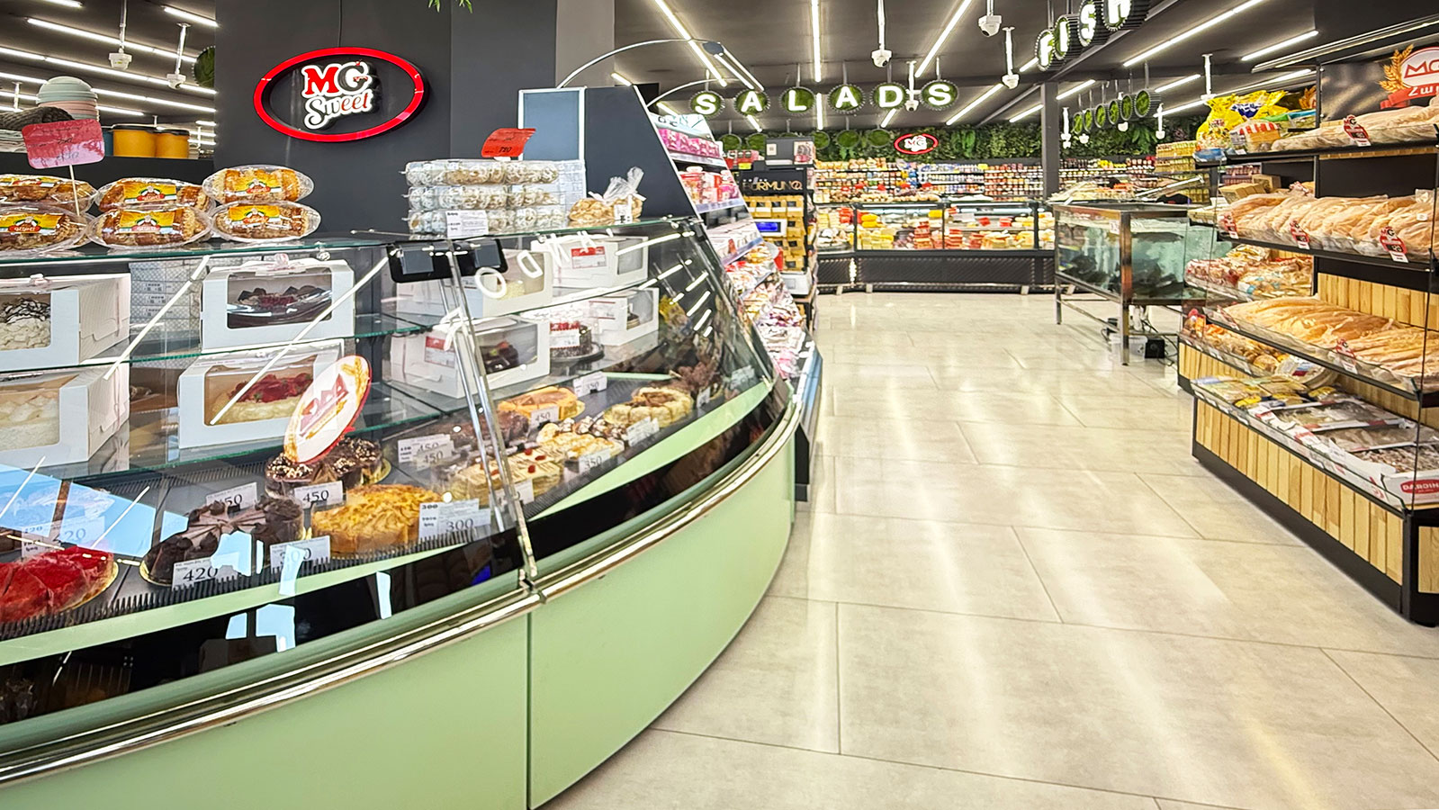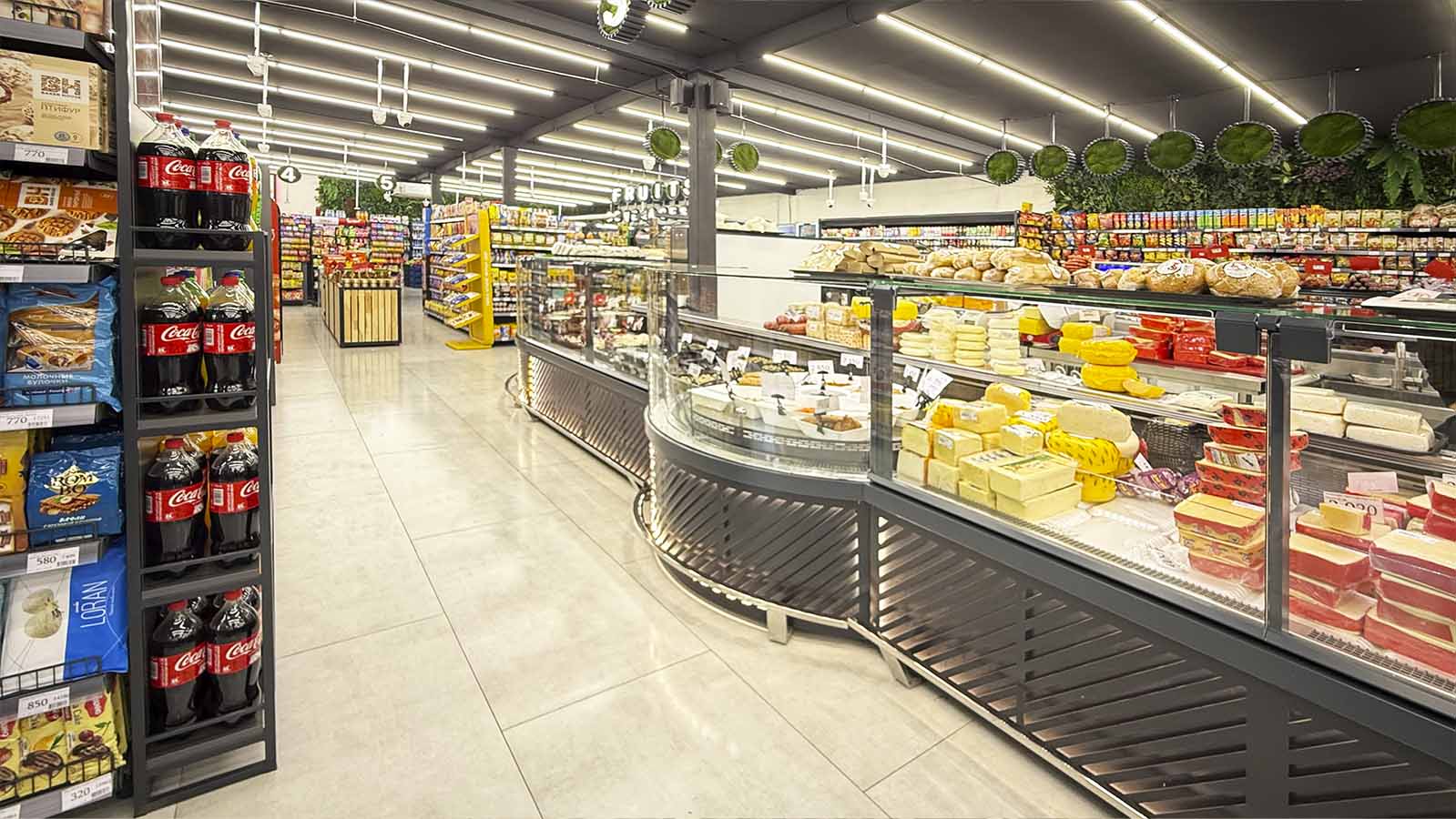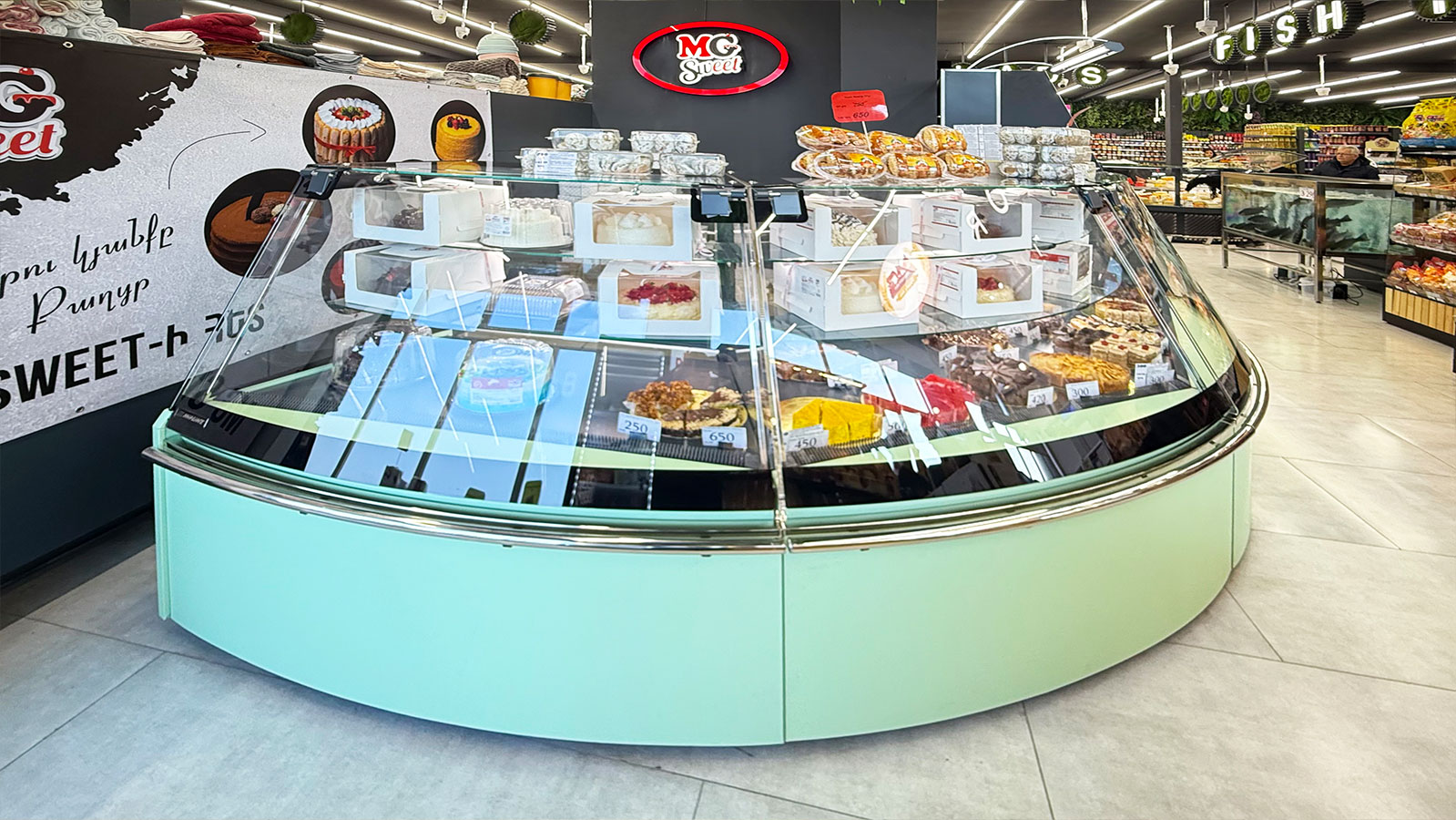 Semi-vertical cabinets Louisiana eco MSV 095 MT O 160-DLM, confectionery counters Dakota sapphire KA 090 patisserie PS 140-DLA-ER35, supermarket MG, Armenia