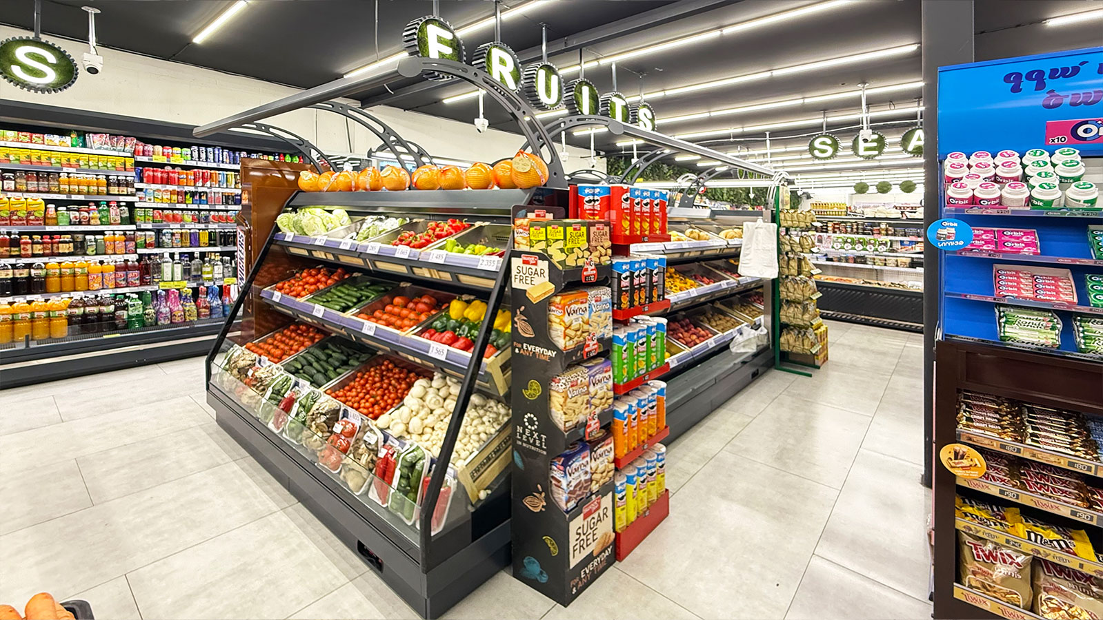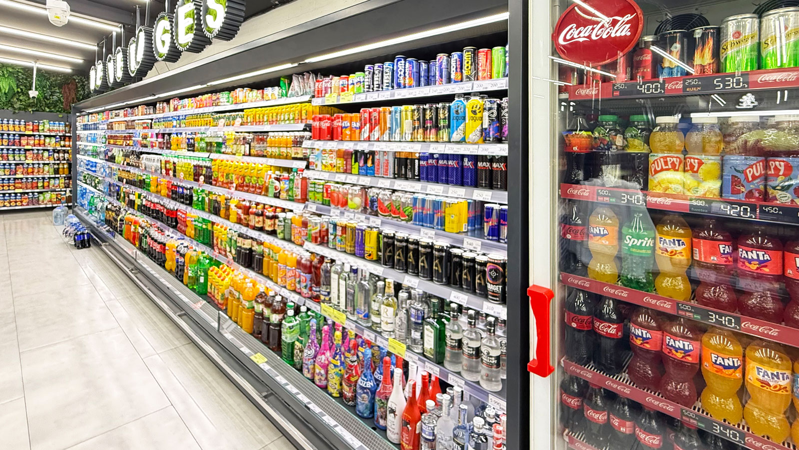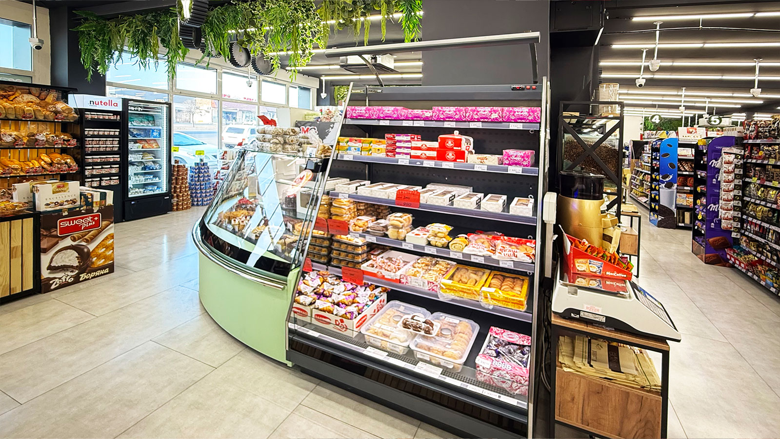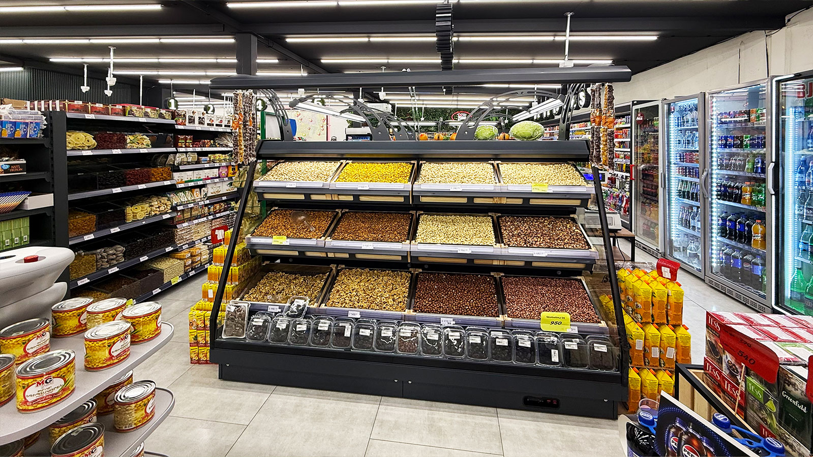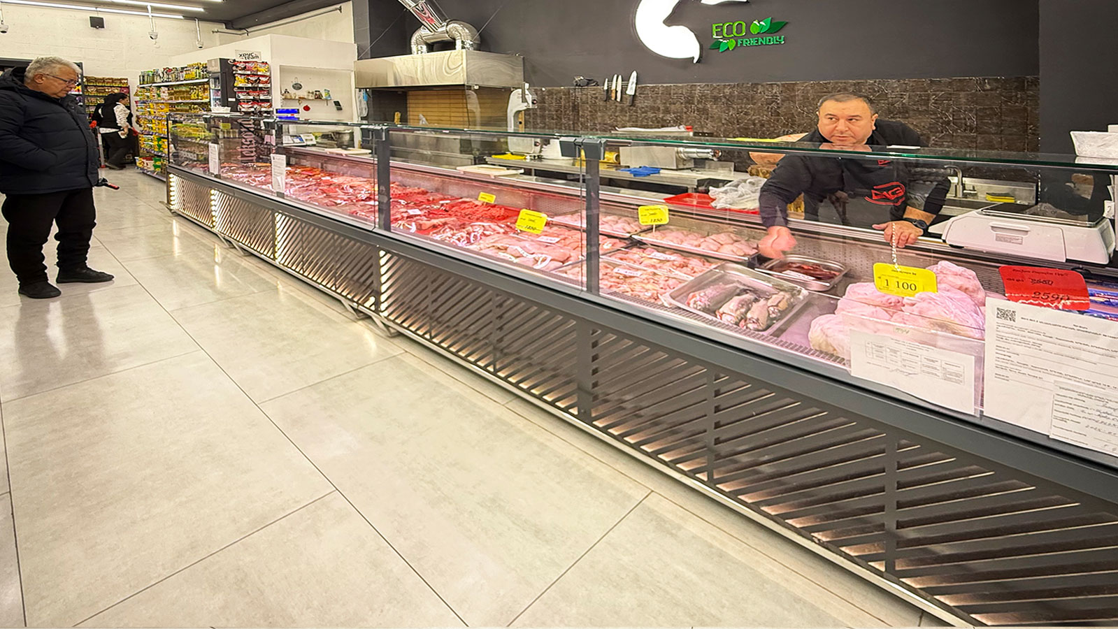Semi-vertical cabinets Louisiana eco MSV 095 MT O 160-DLM, confectionery counters Dakota sapphire KA 090 patisserie PS 140-DLA-ER35, supermarket MG, Armenia