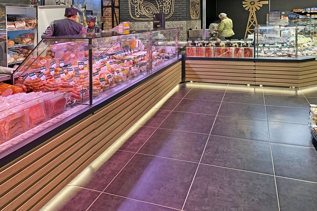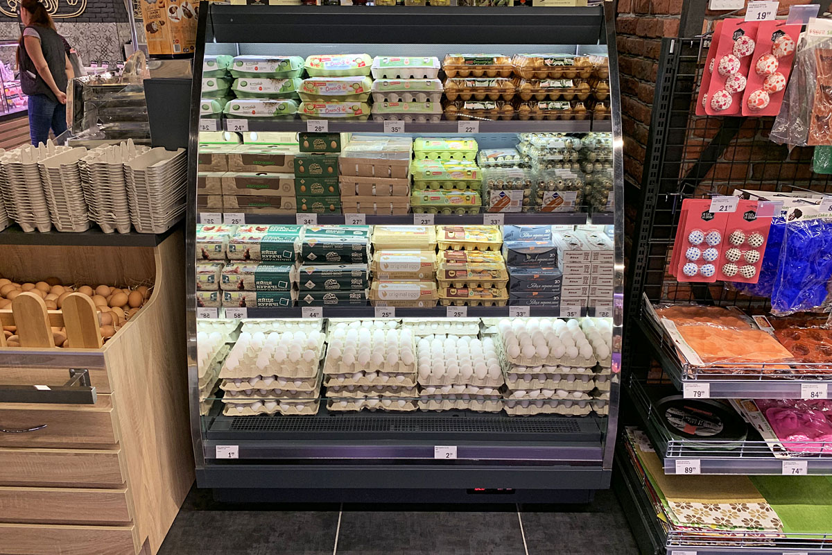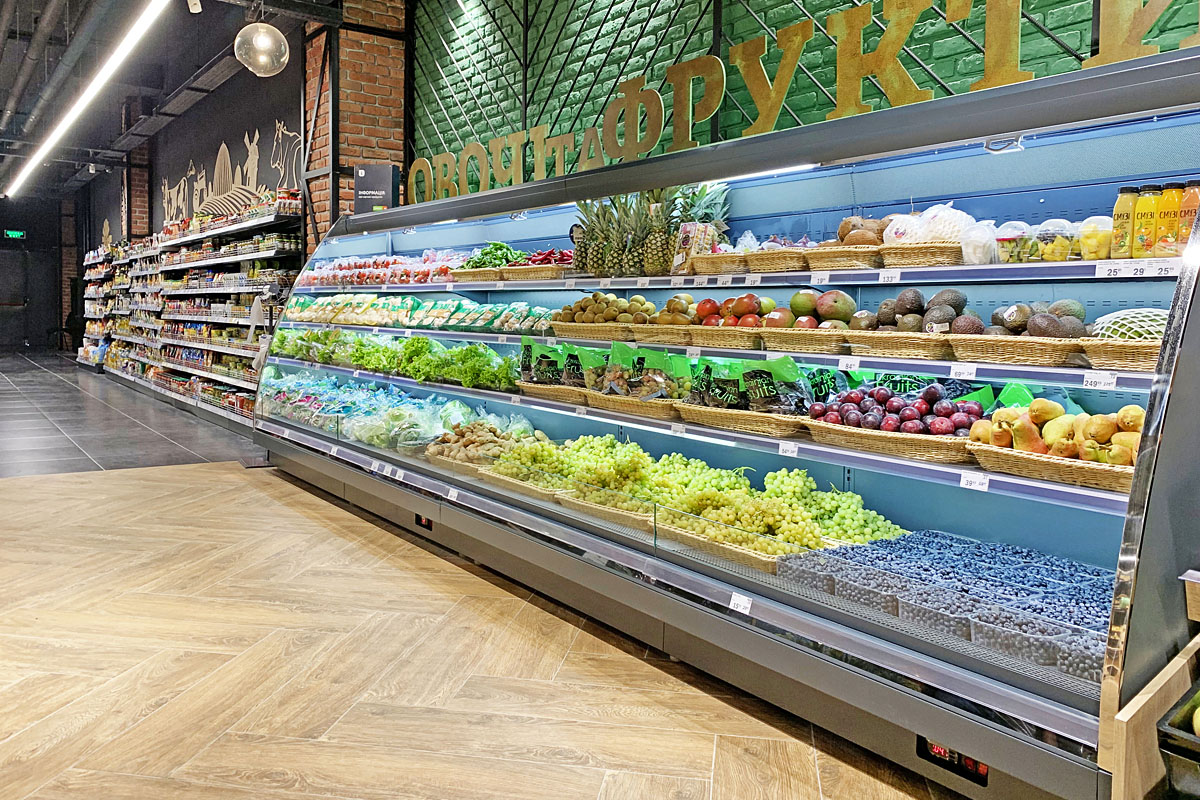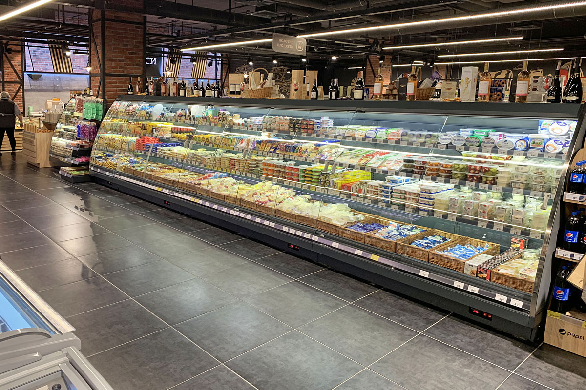 The spacious and open shopping floor resulting from the installation of semi-vertical display cases “Louisiana eco D” makes shopping experience as comfortable as possible allowing customers to easily see the desired department of the supermarket.