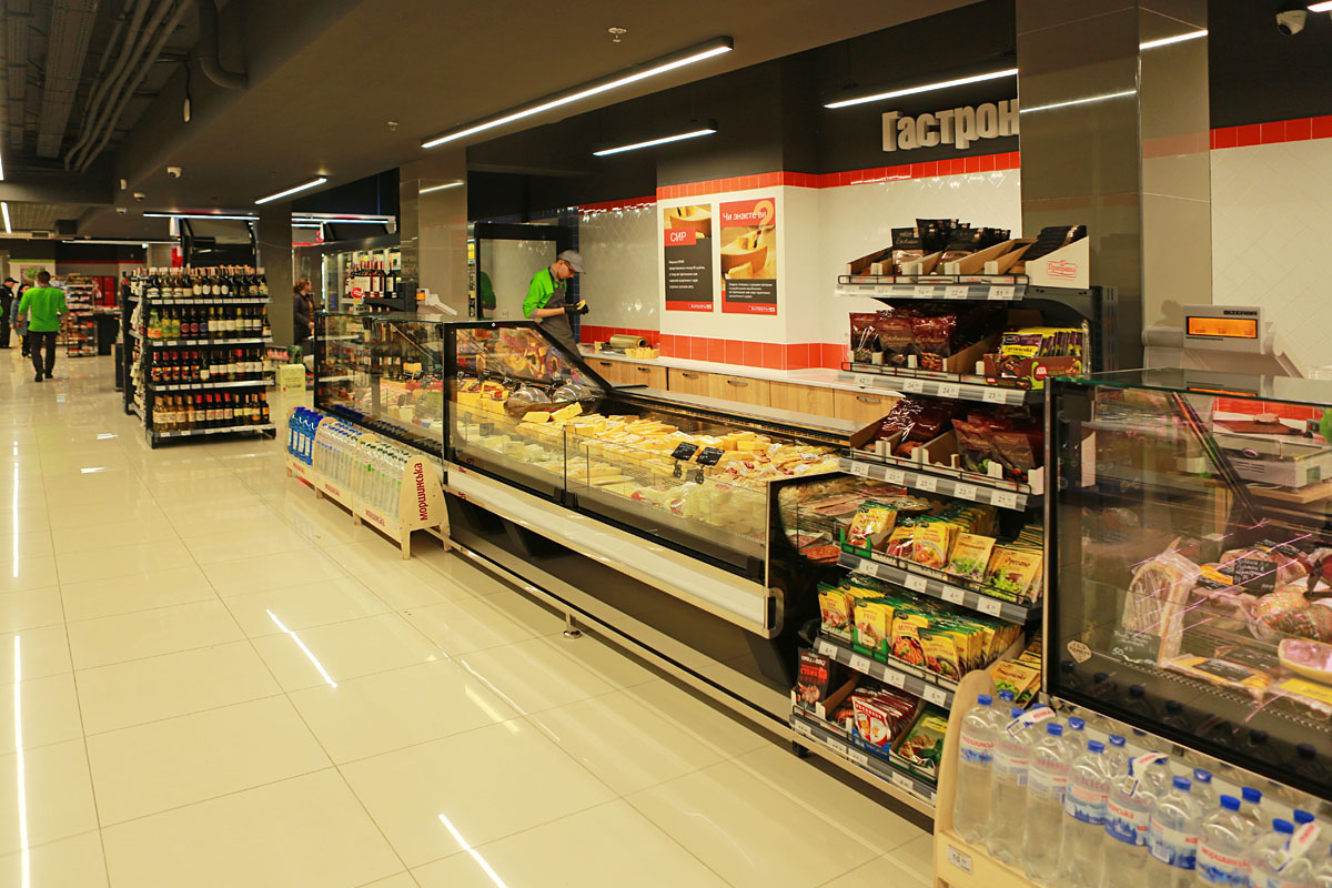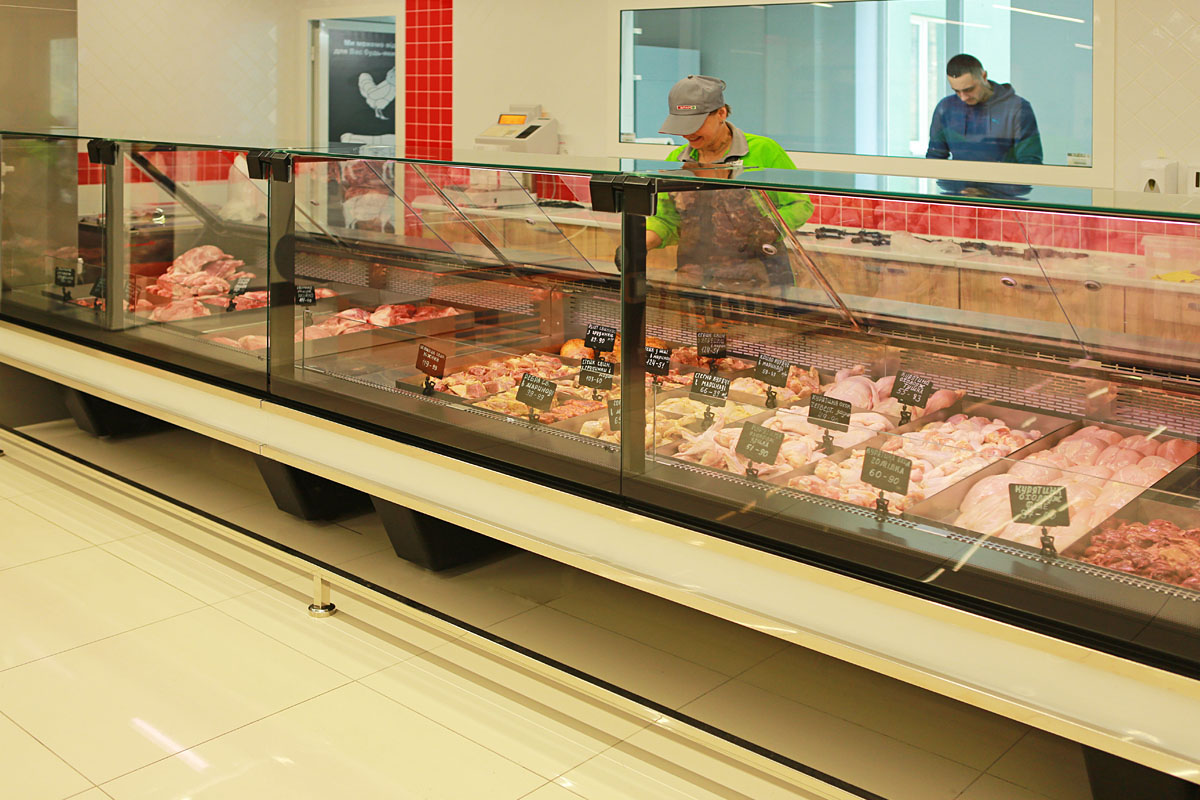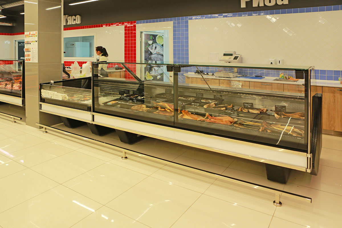 There is a wide range of foodstuff was presented by EUROSPAR in the lines of deli display merchandisers “Missouri cold diamond” performed in an elegant design. These lines, in order to choose products in the self-service shopping, are equipped with “Missouri cold diamond self” modules, while for selling fresh fish on ice – with a module “Missouri cold diamond fish self A” with static cooling.