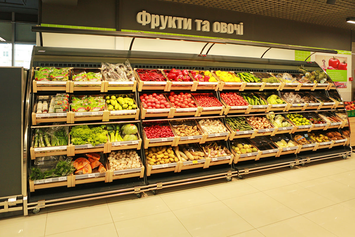 The freshness of fruits and vegetables is maintained by the “Louisiana VF” wall-sited display cases, which make it easier to their restock with produce.