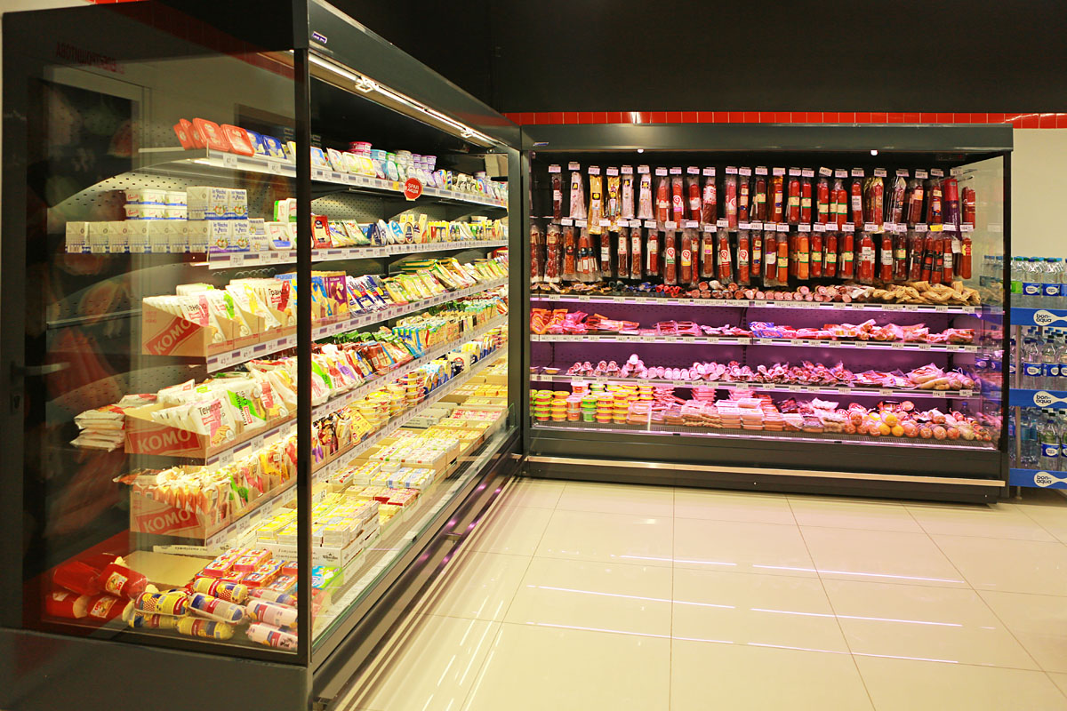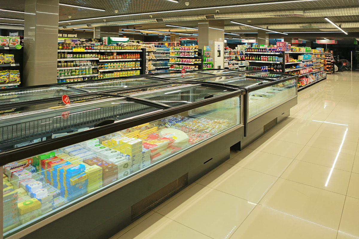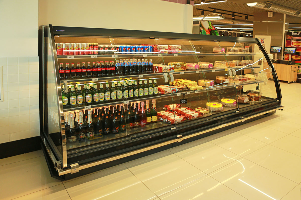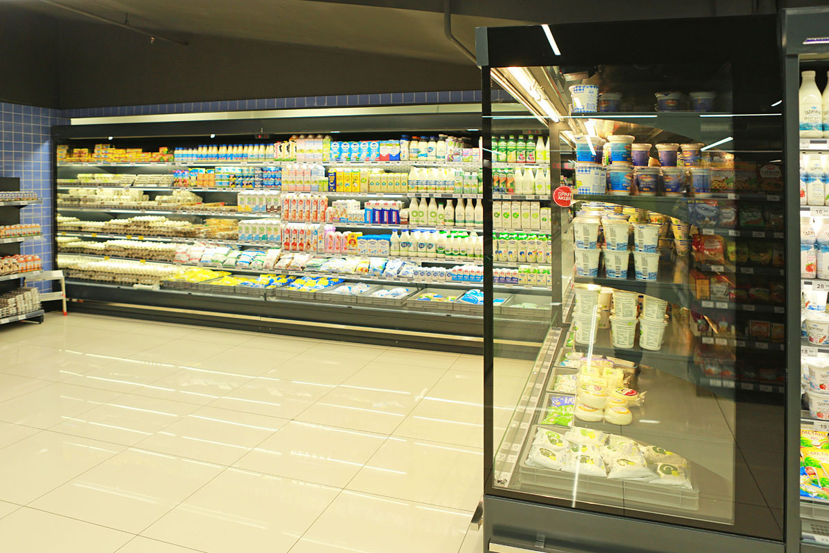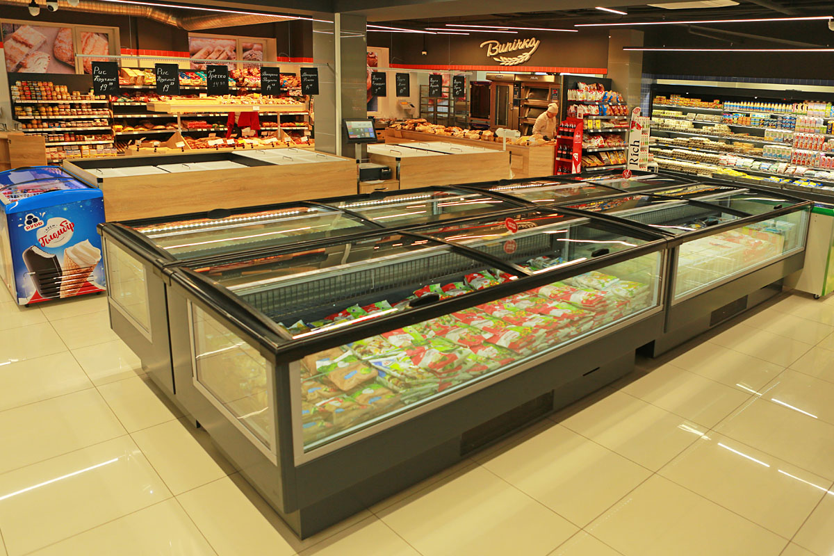 Frozen products are presented in self-contained low-temperature island cabinets “Alaska A S 100” using R290 refrigerant. Static cooling of these cabinets reduces the airing of products to 80%, and the side glazing offers shoppers the maximum visibility of the product compared to a chest freezer.