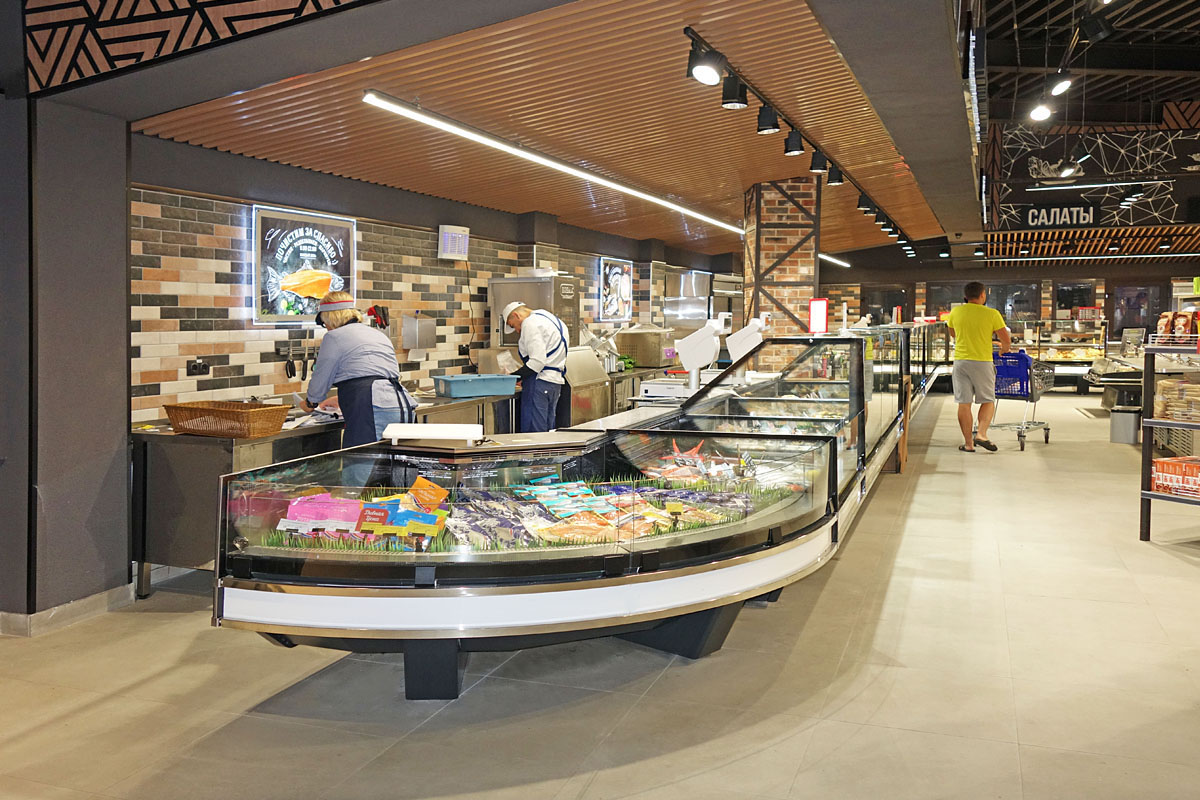 One of the largest retail chains in Belarus, “Vitalur”, is strengthening its position in the retail market by opening new facilities of the Premium Class. Each supermarket has its own unique personal design, but at the same time, the stores are decorated in a common style.