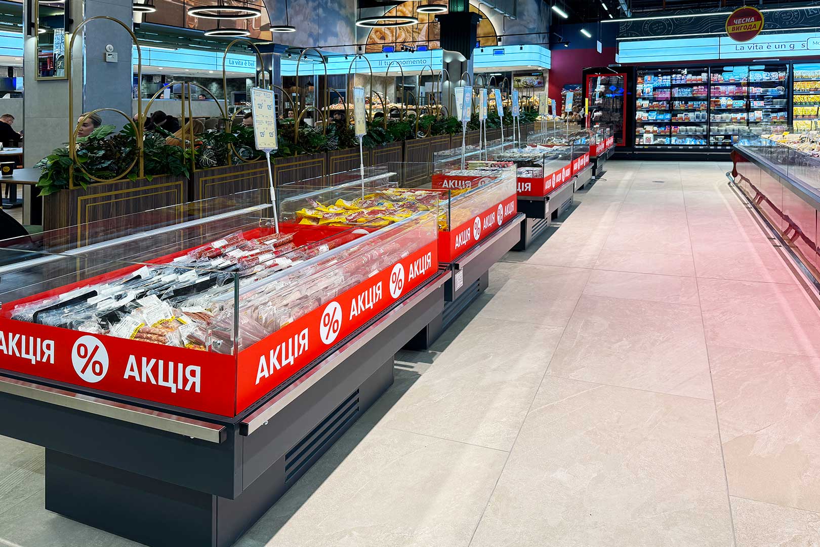 „Food Market” w Kijowie stał się nie tylko supermarketem, lecz prawdziwą przestrzenią tematyczną z wyrazistą koncepcją wizualną i starannie zaprojektowaną strefą sprzedaży. Kubiczny design urządzeń chłodniczych „Hitline” harmonijnie wpisał się w ogólną koncepcję sklepu, zapewniając optymalne warunki prezentacji i przechowywania różnych kategorii produktów. Zrealizowany projekt dostawy urządzeń chłodniczych był 17. projektem w tym roku dla sieci handlowej „Epicentr”.