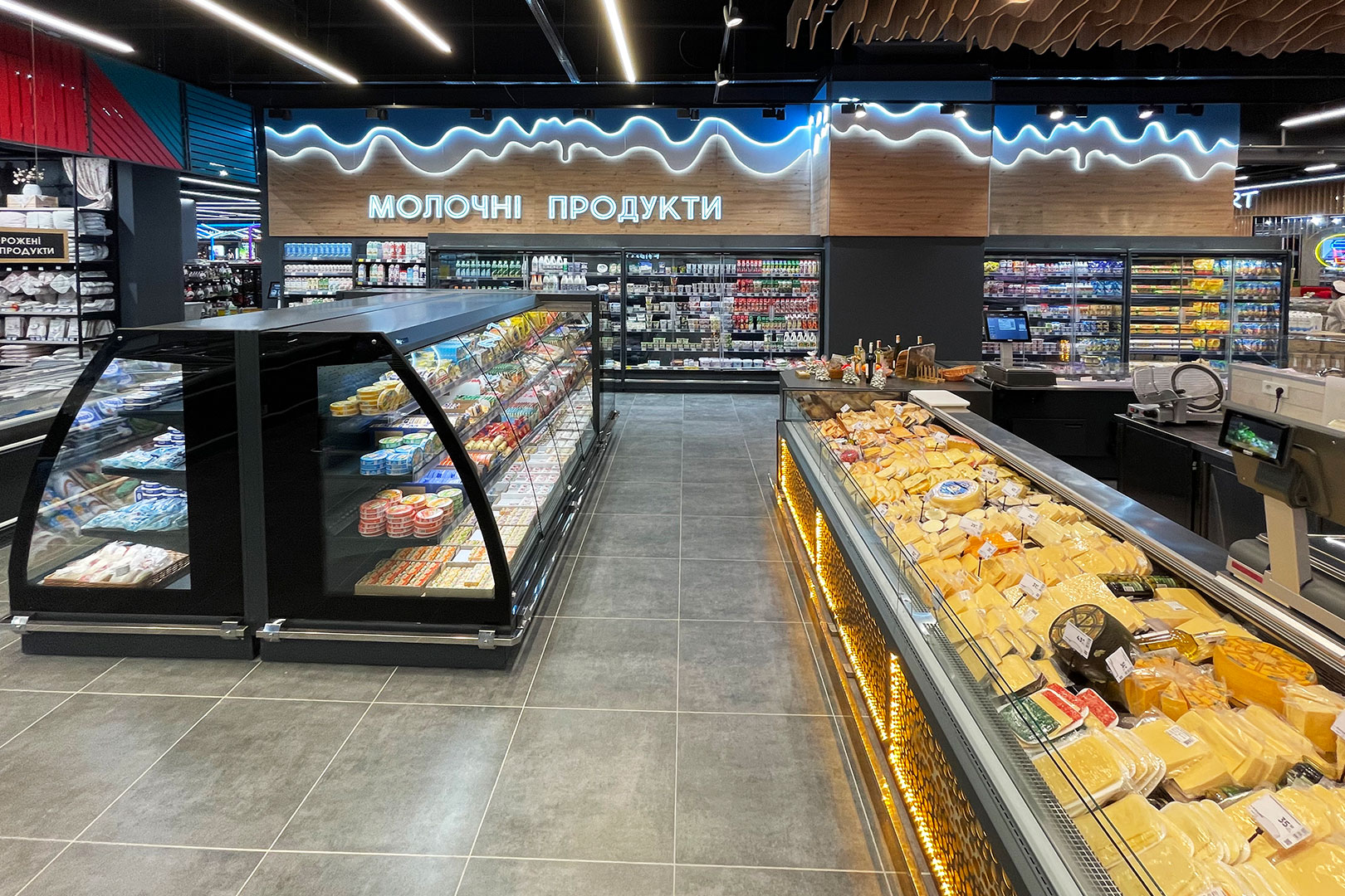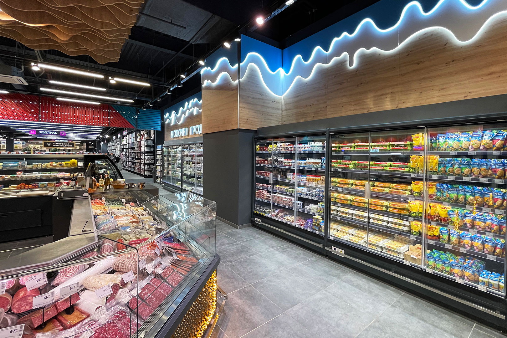 Niskie regały chłodnicze Louisiana eco MSV 105 MT D M, lady chłodnicze Missouri MC 120 deli OS M, regały chłodnicze Indiana 2 MV 080 MT D M, supermarket Epicentr